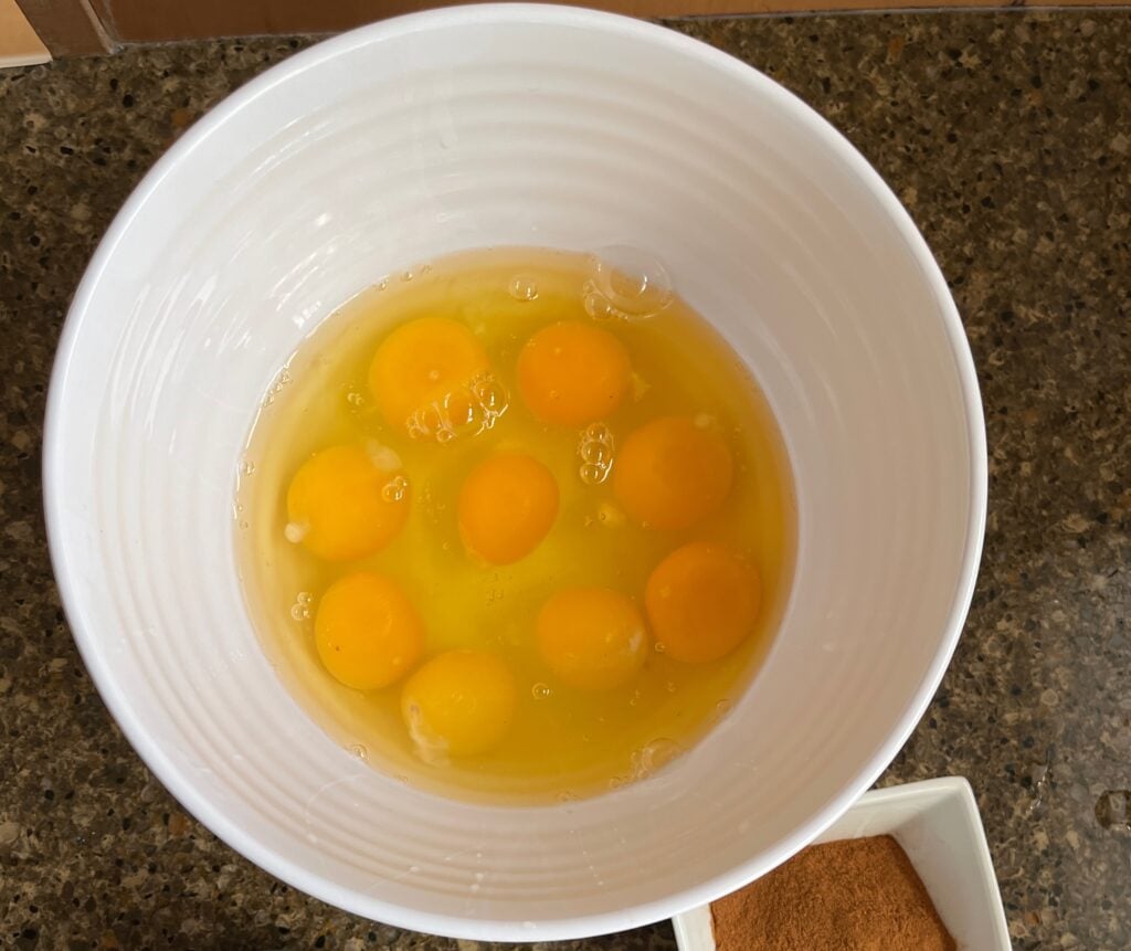 Flaxseeds are a common ingredient in low-carb baking and keto cooking. Well, I was shocked to learn that they work as a substitute for an egg in baking, too. Take one tablespoon of freshly ground flaxseed and combine with three tablespoons of warm water. Allow the mixture to soak for five to ten minutes, or until it thickens into a gel-like consistency. Once it reaches this texture, you can incorporate it into your recipe as a replacement for one large egg.
