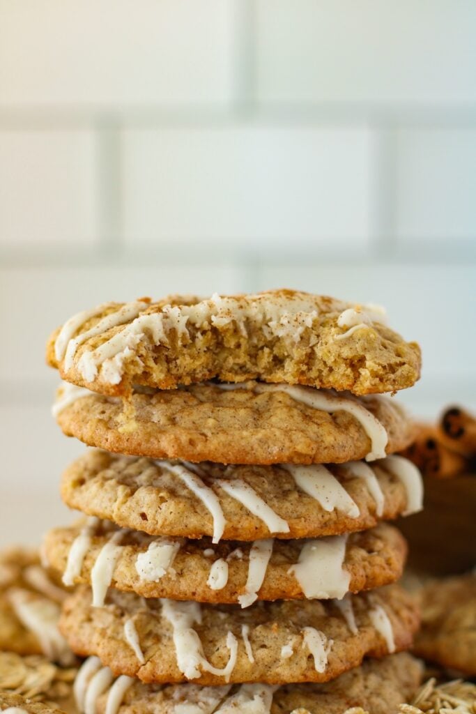 - Drizzle the glaze generously over the cookies and top with a light dusting of cinnamon.