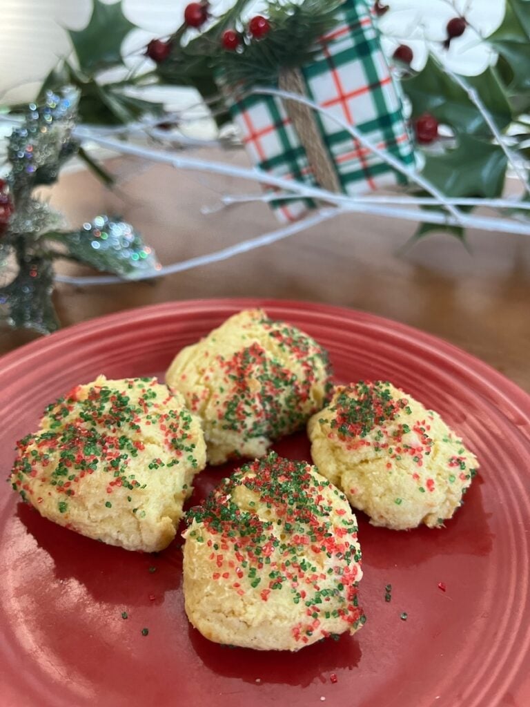 - 1 tablespoon decorating sugar each for red and green