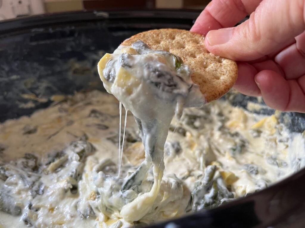 No Mayo Slow Cooker Spinach Artichoke Dip