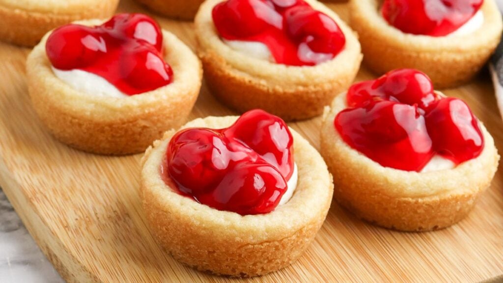 These bite-sized versions of cherry pie use just four ingredients and come together way faster than making an entire pie. The lattice top still gives you that classic bakery look, making them perfect for Valentine’s Day when you want something that looks impressive without the time commitment.